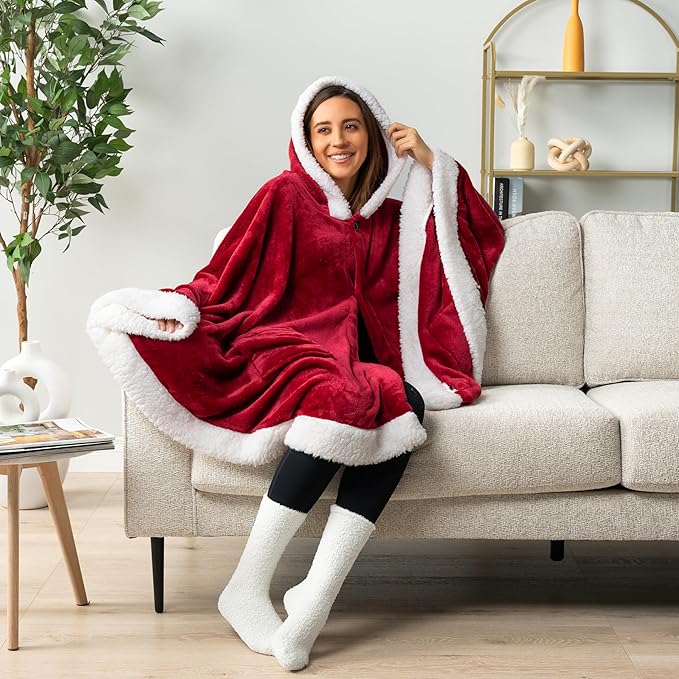 - The one shawl you can wear for EVERY occasion: Fleece Wearable Blanket for Adult Women: Soft, fuzzy, plush, hooded blanket is a shawl cape wrap that keeps your hands free and provides warmth and coziness while lounging at home, reading, or working in cold office, zoom meeting, outside sports games, movies, TV, camping, hot date... then SLEEP in it.